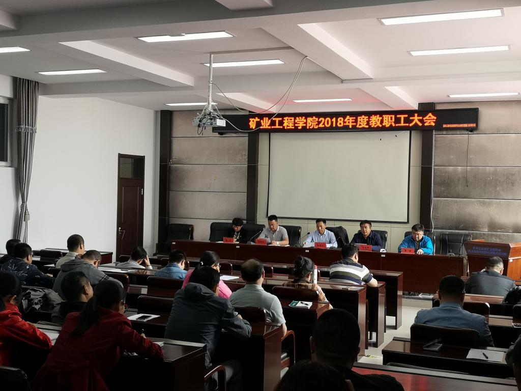 会上听取和审议了经理肖福坤作的《凝心聚力、攻坚克难,在坚持大矿业办学特色中开创学院发展新局面》行政工作报告,报告从专业认证工作有突破,审核评估整改持见成效,毕业生就业工作达标准,教研、科研工作创新高,矿业馆建设设计和规划工作有新进展,常规工作稳步推进等方面总结了2018年的行政工作;从进一步坚持“以本为本”落实“四个回归”和“新时代高教40条”,在助推龙江全面振兴全方位振兴上找准着力点,解放思想、攻坚克难,在坚持大矿业办学特色中开创学院发展新局面为总体工作思路部署了2019年工作。