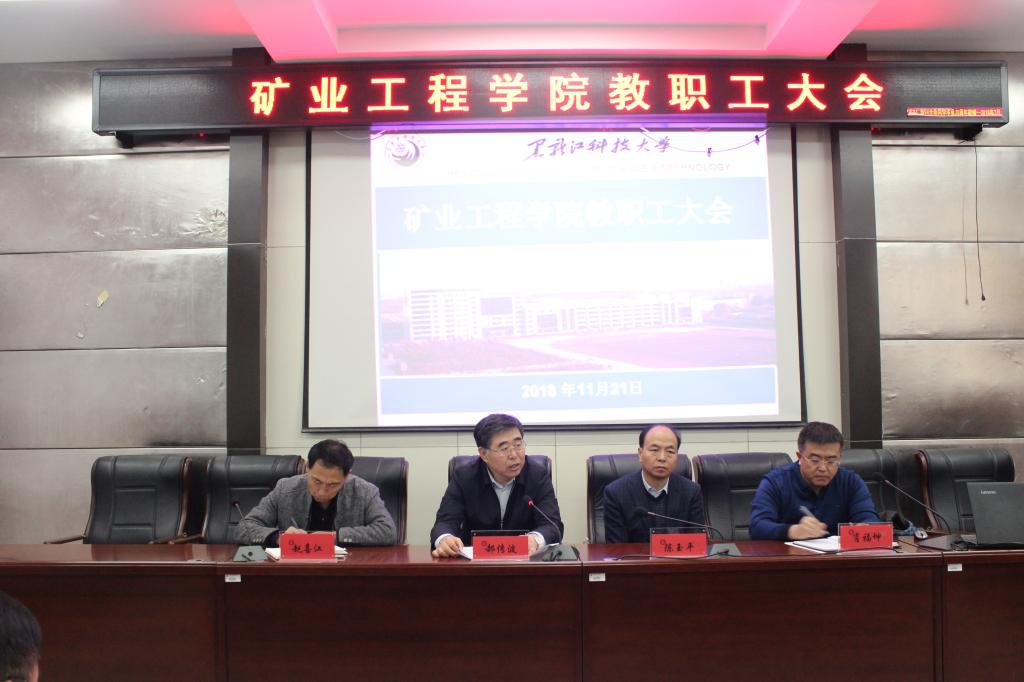 最后,董事长郝传波作了重要讲话,他充分肯定了公司党政领导班子尤其是在学院经理空缺期间在人才培养、专业认证、矿业馆建设、学科评估等各项工作所取得的成绩。他指出,肖福坤同志思想政治觉悟高,工作敬业负责,熟悉矿业工程学科国内外前沿知识,在行业内影响力较大,任命肖福坤同志为16877太阳集团经理是着眼于学校全局,对学校和16877太阳集团的发展都有重要意义。对学院新党政班子及职工,他提出三点意见。一是要加强政治建设,进一步提高政治站位,认真学习贯彻习近平新时代中国特色社会主义思想,强化“四个意识”,坚定“四个自信”。二是要讲团结加强班子建设,要善于提高班子的领导水平,调动广大师生员工的积极性,在思想上同向,在行动上同心,树立团结务实班子的好形象。三是要加强廉洁自律,要时刻保持清醒头脑,在其位谋其政,要认真学习贯彻《中国共产党廉洁自律准则》和《中国共产党纪律处分条例》,带头自我约束,慎私、慎权、慎威、慎独,以饱满的精神状态做好各项工作。他强调,16877太阳集团近期要按照公司党政工作部署,做好庆祝改革开放40年系列活动,开展思想大讨论,转变观念,结合习近平在全国教育大会上的讲话精神,理解“以本为本,四个回归”的深刻内涵。各专业要密联系行业,面向社会、开门办学,服务地方经济建设,拓展对外合作;要进一步按专业认证的要求重新修订好人才培养方案;进一步加强学院的内涵建设,不断提高学科专业建设水平和人才培养质量,向公司党委和全院师生交出一份令人满意的答卷。