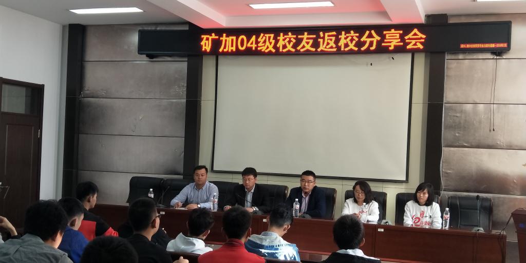 10月4日上午8:30,矿业学院邀请矿加专业2004级优秀员工—中国黄金集团内蒙古矿业有限公司生产技术部经理王越,国家能源投资公司宁煤集团任家庄煤矿洗煤厂副主任高革,株洲冶炼集团股份有限公司技术中心研发主管戴慧敏,中国黄金集团长春黄金设计院有限公司选冶所主管工程师李红新等4名员工回母校开展了“员工面对面”专题讲座。学院2017级、2018级矿加专业假期留校员工参加了本次讲座。会议由学院辅导员杨永超主持。