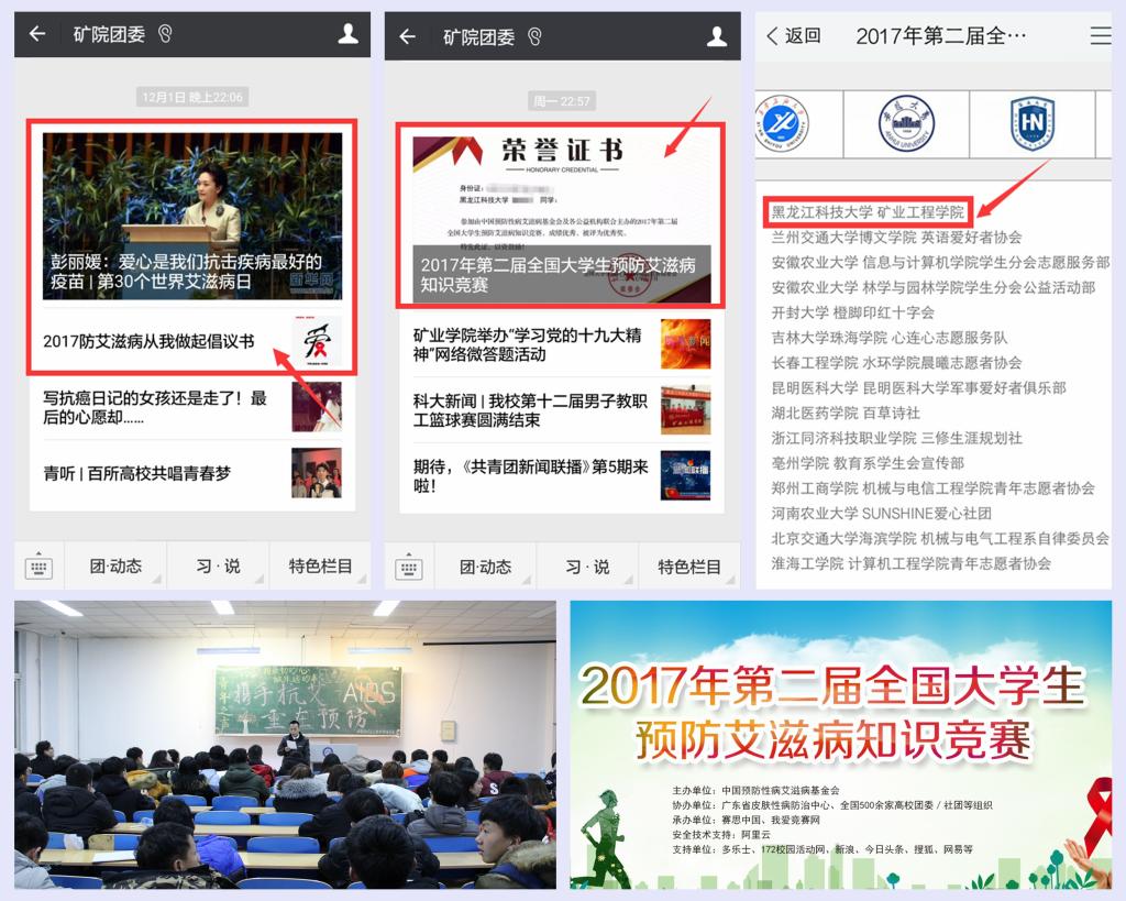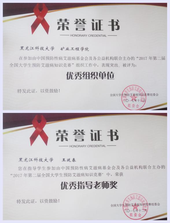 12月31日,由中国预防性病艾滋病基金会主办、多家单位承办的“2017年第二届全国老员工预防艾滋病知识竞赛”落下帷幕。公司矿业学院作为全国500余家高校团委/社团等组织其中之一积极承办了本次活动。参赛期间,矿业学院积极积极筹备、扎实推进,共组织300人参赛,由于表现突出,学院荣获“优秀组织单位”荣誉称号,辅导员王延春荣获“优秀指导教师奖”,宋雨薇等同学荣获“优秀志愿者”荣誉称号。