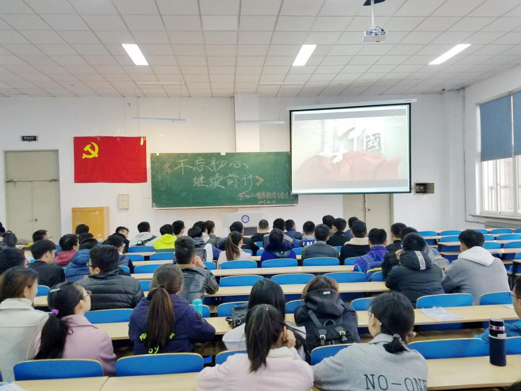 10月11日中午,矿业学院员工党支部在主楼EN0101召开全体党员大会,集中学习观看了电视政论片《不忘初心 继续前行》的第一集《举旗定向》。学院员工第二党支部书记王延春出席会议。
