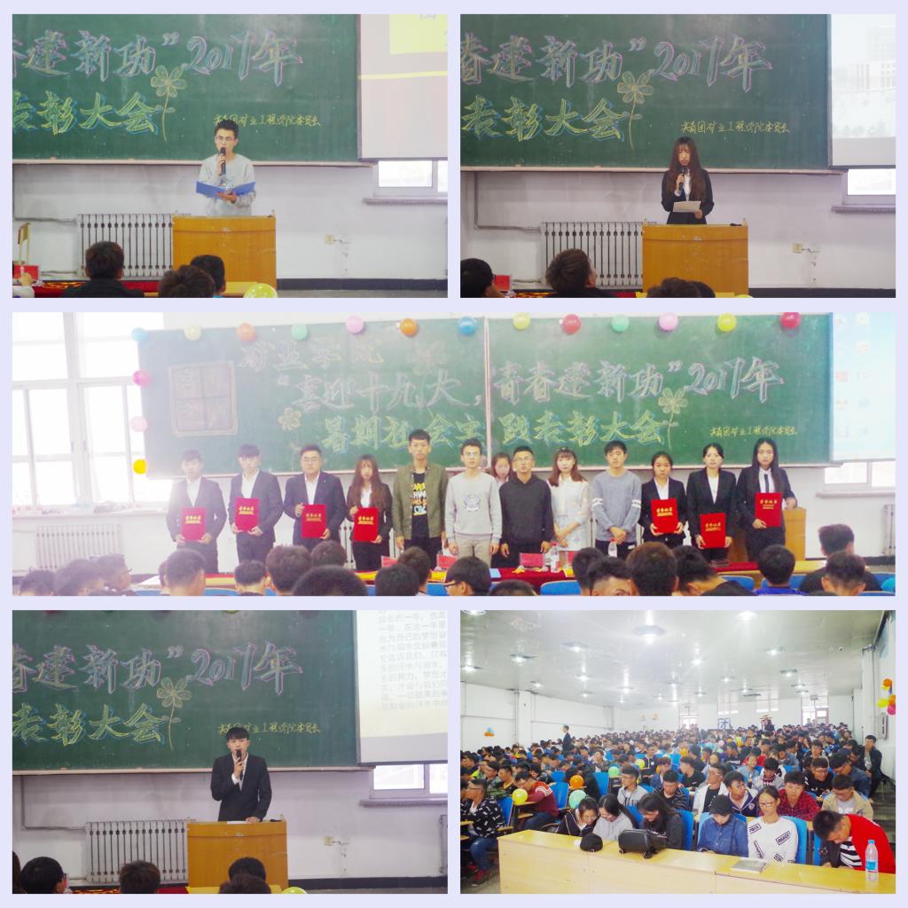 为了将老员工暑期社会实践活动不断引向深入,增强基层团学组织活力,创新社会实践活动途径,同时也为更好的总结经验、树立典型、表彰先进,9月17日下午,矿业学院在主楼EN0401召开了2017年暑期社会实践总结表彰大会。学院团委书记王延春参加了本次大会。