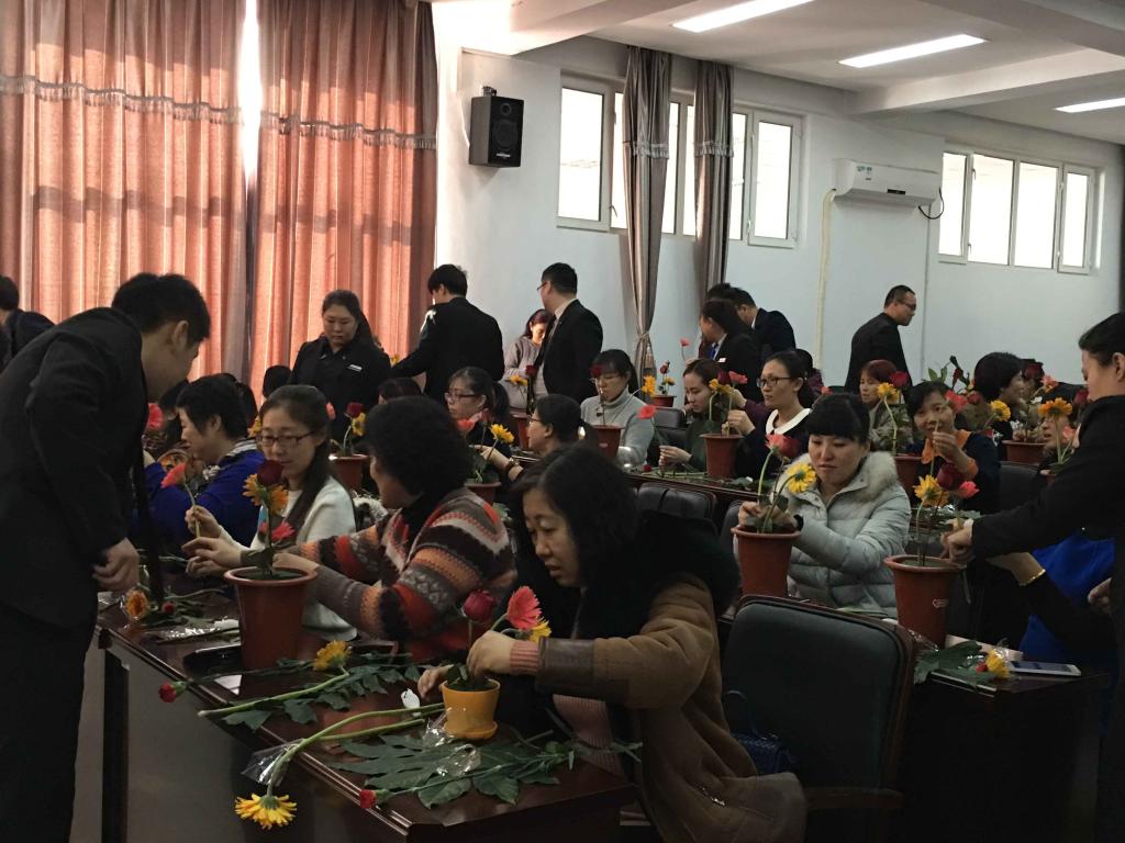 活动中,海佛金融的员工给各位老师带来新鲜的有着各种寓意的鲜花及花盆,并给大家讲解鲜花名字的由来、代表的寓意以及插花过程中注意的事项。各位女教师亲自动手剪下每一支鲜花和绿叶,并把它们按自己意愿插入到花盆中。鲜花经过她们的手似乎有了生命和活力,在花盆中亭亭玉立,给她们带去了节日的祝福。在每位海佛金融员工的热情指点下,各位老师都圆满完成了自己的插花任务,并把自己的劳动成果带回了自己的办公室。