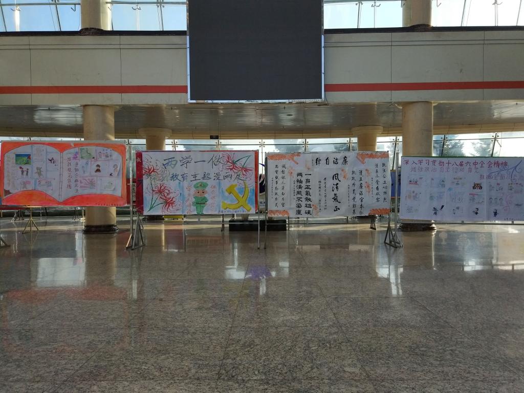 为深入开展“两学一做”学习教育,不断创新学习教育内容与形式,引导广大师生党员坚定理想信念、提高党性觉悟、强化宗旨意识,抒发对党忠诚、勇于担当的思想情怀,11月16日,矿业学院在主楼阳光大厅举办了“两学一做”学习教育主题书法漫画展。
