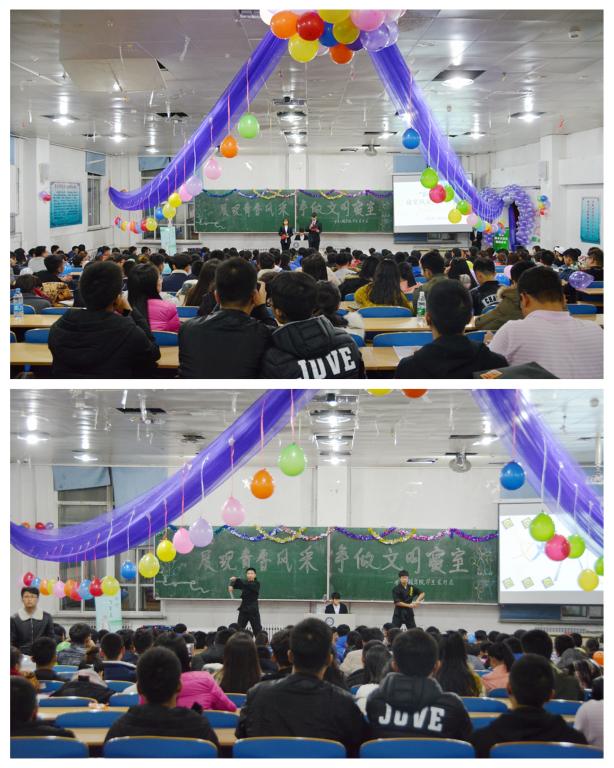 通过前期初赛选拔,结合日常文明寝室抽检情况,共有7个寝室入围决赛。决赛分三个环节:寝室安全知识问答、默契大考验和才艺大比拼。第一环节大家互不相让,你追我赶,毫不示弱,得分交错上升,掀起一轮轮高潮;第二环节进行了“你做我猜”游戏,选手们极尽所能描述图中词语,激情澎湃,宿舍默契尽显;第三环节参赛寝室八仙过海,各显神通,精彩的节目赢得了台下观众阵阵掌声。经过激烈的角逐,最终,17公寓641寝室获得本次比赛冠军。