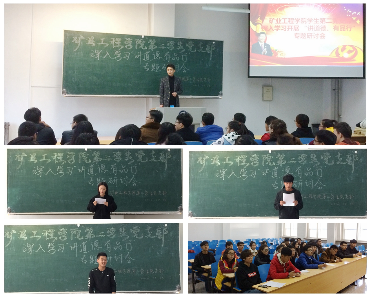 为深入贯彻落实学校关于“两学一做”学习教育的相关工作要求,扎实推进“两学一做”学习教育,增强员工党员的大局意识、服务意识、党性意识,矿业学院员工党支部以“讲道德、有品行”为主题开展了系列活动。