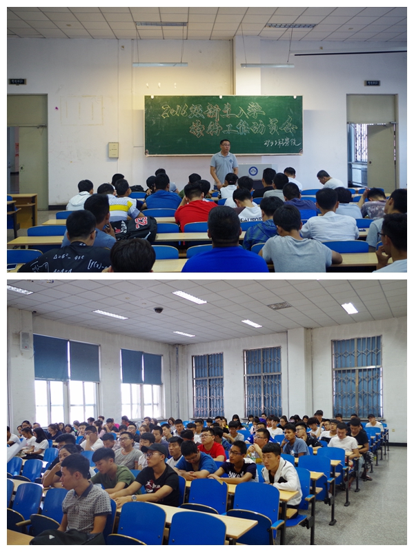 为认真贯彻落实学校学工委(扩大)会议关于做好新生入学接待工作的指示精神,确保2016级新生入学各项工作安全、高效、有序完成,8月29日中午,矿业学院在主楼EN0101召开了2016级新生入学接待工作动员会。学院辅导员孟祥瑞、王延春及院员工会、院团委全体迎新工作人员参加了本次大会。