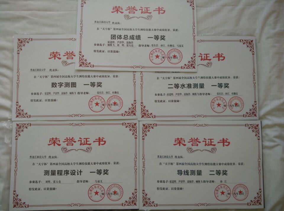 公司代表队由公司党委书记赵喜江教授带队,选派2013级测绘工程专业6名员工参加了四个项目的竞赛。经过三天的激烈角逐,获得了团体总成绩全国排名第十二位、团体一等奖的好成绩,并分别获得了1:500数字地形图测绘、二等水准测量、测量程序设计三个单项一等奖,以及一级电磁波测距导线项目二等奖。在全国同类院校中名列前茅。