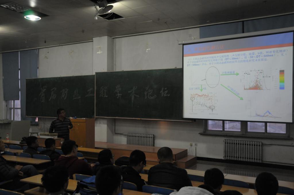 会上,吕一波、李桂春、肖福坤、康健四位老师分别做作了题为《粗煤泥分选技术的研究》、《浸出工艺与理论研究》、《冲击地压测定与监测》、《瞬变电磁技术在煤矿水害防治中的应用》的学术报告,四位老师在报告中旁征博引,循循善诱,为参会师生上了一堂生动的专业理论课。