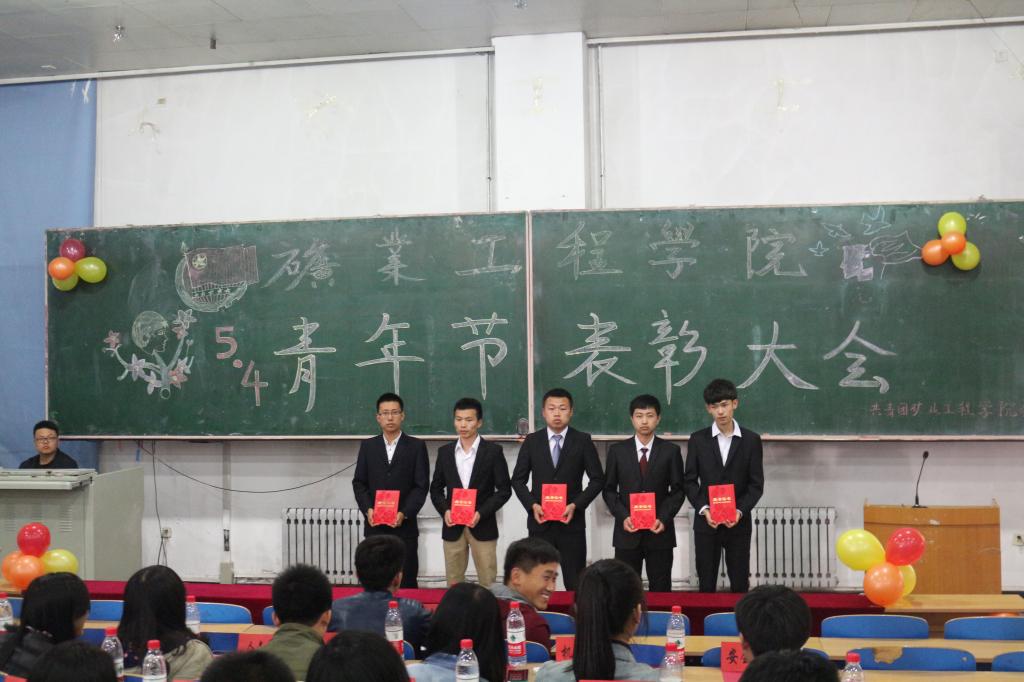 本次会议共有二项议程。一是辅导员王延春宣读了《共青团16877太阳集团委员会关于表彰2014年度五四红旗团支部、矿院之星、优秀团干部、优秀团员的决定》,与会领导向受表彰的先进集体和个人代表颁奖;二是学优秀团员代表赵运辉,优秀团干部代表刘威,矿院之星代表杨兵威、霍天宏,五四红旗团支部代表王愿分别进行了典型经验交流。