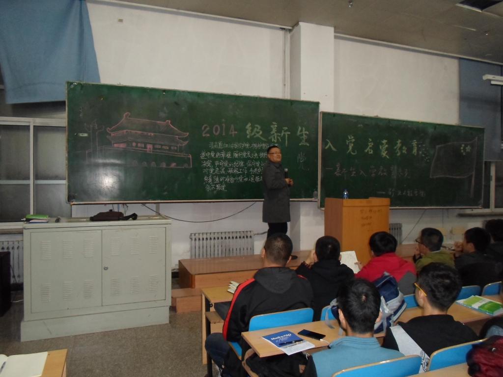 会上,何老师从了解党的性质和宗旨、掌握申请入党条件、要以实际行动争取早日加入党组织三个方面对新生进行了讲解。另外,他希望同学们大学期间严格要求自己,踊跃递交入党申请书,尽快从思想上、行动上向党组织靠拢,争取早日成为一名光荣的中国共产党党员。