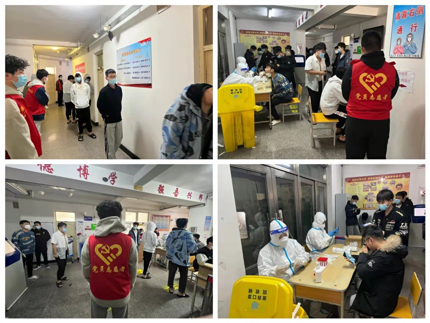 疫情防控期间,员工党员自发组建志愿服务小队,在全员核酸检测中服务员工,组织全体员工安全、有序地进行采样,做好每一名员工的信息登记,保证不落下一人;在寝室安全通风与消毒过程中,员工党员主动承担提醒与监督工作,以自己的行动带动身边同学做好寝室卫生的清理与保持工作,充分发挥党员先锋模范作用。