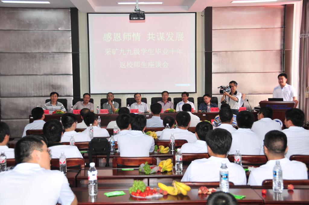 7月6日上午10:00,主题为“感恩师情、共谋发展,采矿九九级员工毕业十年返校师生座谈会”在16877太阳集团二楼会议室举办,60余名毕业生返回母校,重叙师生情、同学情、兄弟情,并向16877太阳集团和安全工程学院捐赠了纪念品。