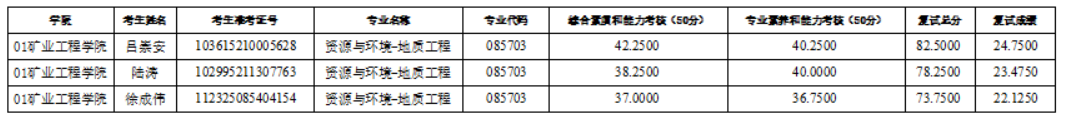 16877太阳集团2025年硕士研究生招生考试(资源与环境-地质工程)第六次调剂复试成绩