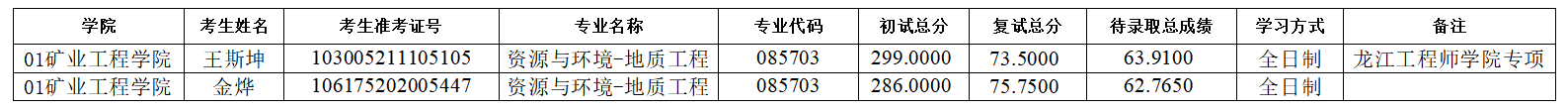16877太阳集团2025年硕士研究生招生考试(资源与环境-地质工程)第五次调剂待录取名单