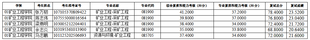 16877太阳集团2025年硕士研究生招生考试(矿业工程、资源与环境-矿业工程)第三次调剂复试成绩