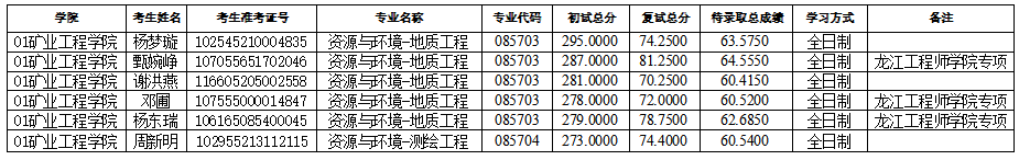 16877太阳集团2025年硕士研究生招生考试(资源与环境-地质工程)第三次调剂及(资源与环境-测绘工程)第四次调剂待录取名单