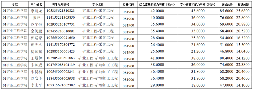 16877太阳集团2025年硕士研究生招生考试(矿业工程)第二次调剂待录取名单