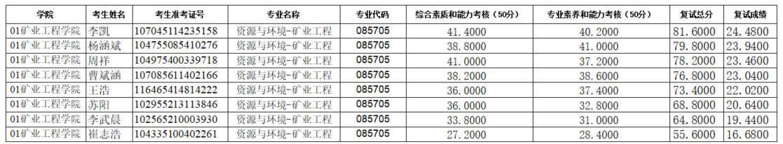 16877太阳集团2025年硕士研究生招生考试(资源与环境-矿业工程)第二次调剂待录取名单
