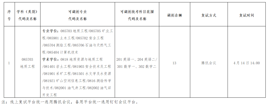16877太阳集团2025年硕士研究生考试(地质工程)次调剂公告