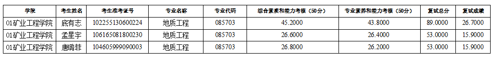 16877太阳集团2025年硕士研究生招生考试(资源与环境-地质工程)第一次调剂待录取名单