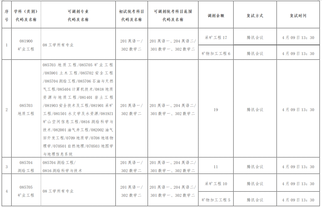 线上复试平台统一选用腾讯会议,备用平台统一选用钉钉会议平台。具体调剂专业范围和复试时间以系统公布为准。