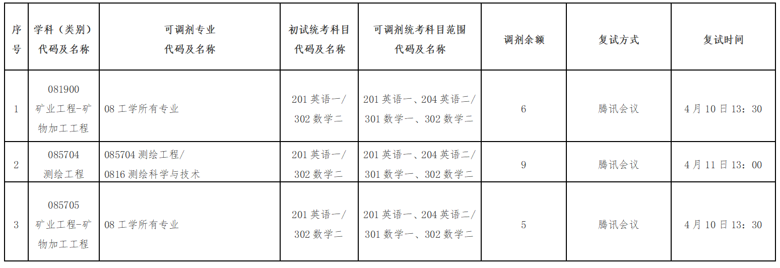 16877太阳集团2026年硕士研究生招生考试(测绘工程、矿业工程-矿物加工工程)第二次调剂公告