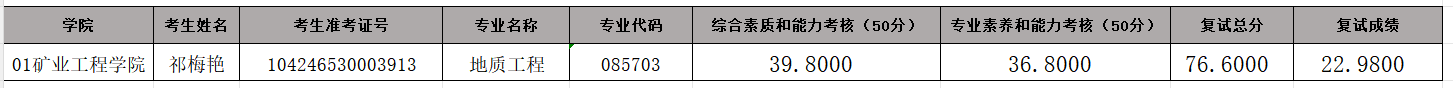 16877太阳集团2026年硕士研究生招生考试(地质工程)第一次调剂待录取名单