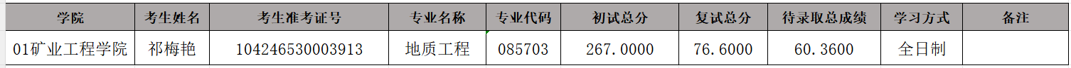 16877太阳集团2026年硕士研究生招生考试(地质工程)第一次调剂待录取名单