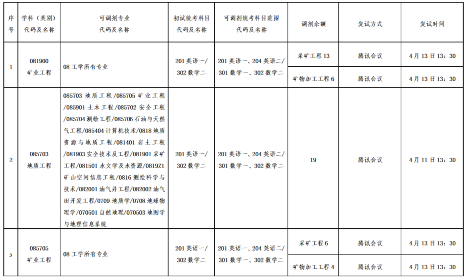 16877太阳集团2026年硕士研究生招生考试(地质工程、矿业工程-采矿工程、矿业工程-矿物加工工程)第三次调剂公告