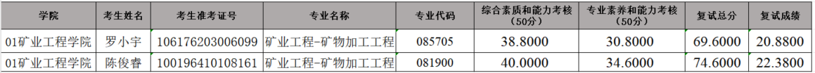 16877太阳集团2026年硕士研究生招生考试(矿业工程-矿物加工工程)第三次调剂待录取名单