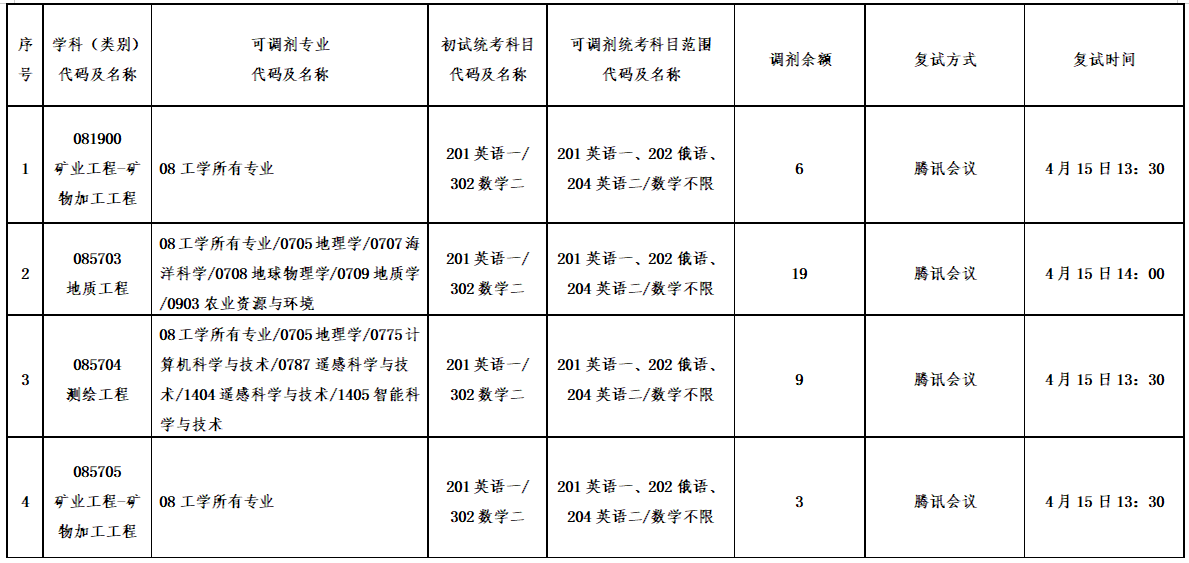 16877太阳集团2026年硕士研究生招生考试(矿业工程-矿物加工工程、地质工程、测绘工程)第五次调剂公告