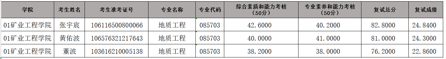 16877太阳集团2026年硕士研究生招生考试(地质工程)调剂复试成绩