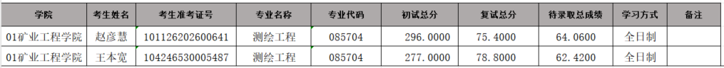 16877太阳集团2026年硕士研究生招生考试(测绘工程)调剂待录取名单