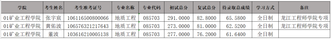 16877太阳集团2026年硕士研究生招生考试(地质工程)调剂待录取名单